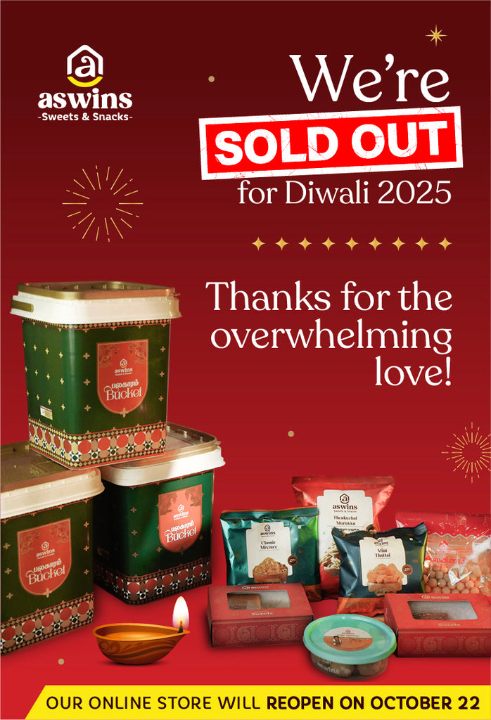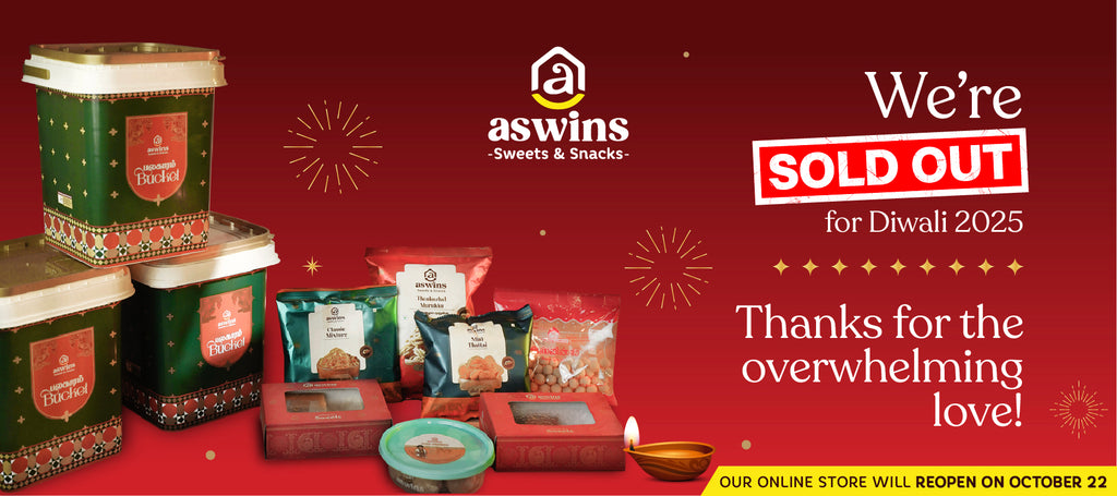 The next time you grab your sweet boxes at Aswins Sweets, remember they were made with love by us and meant to reach your heart.